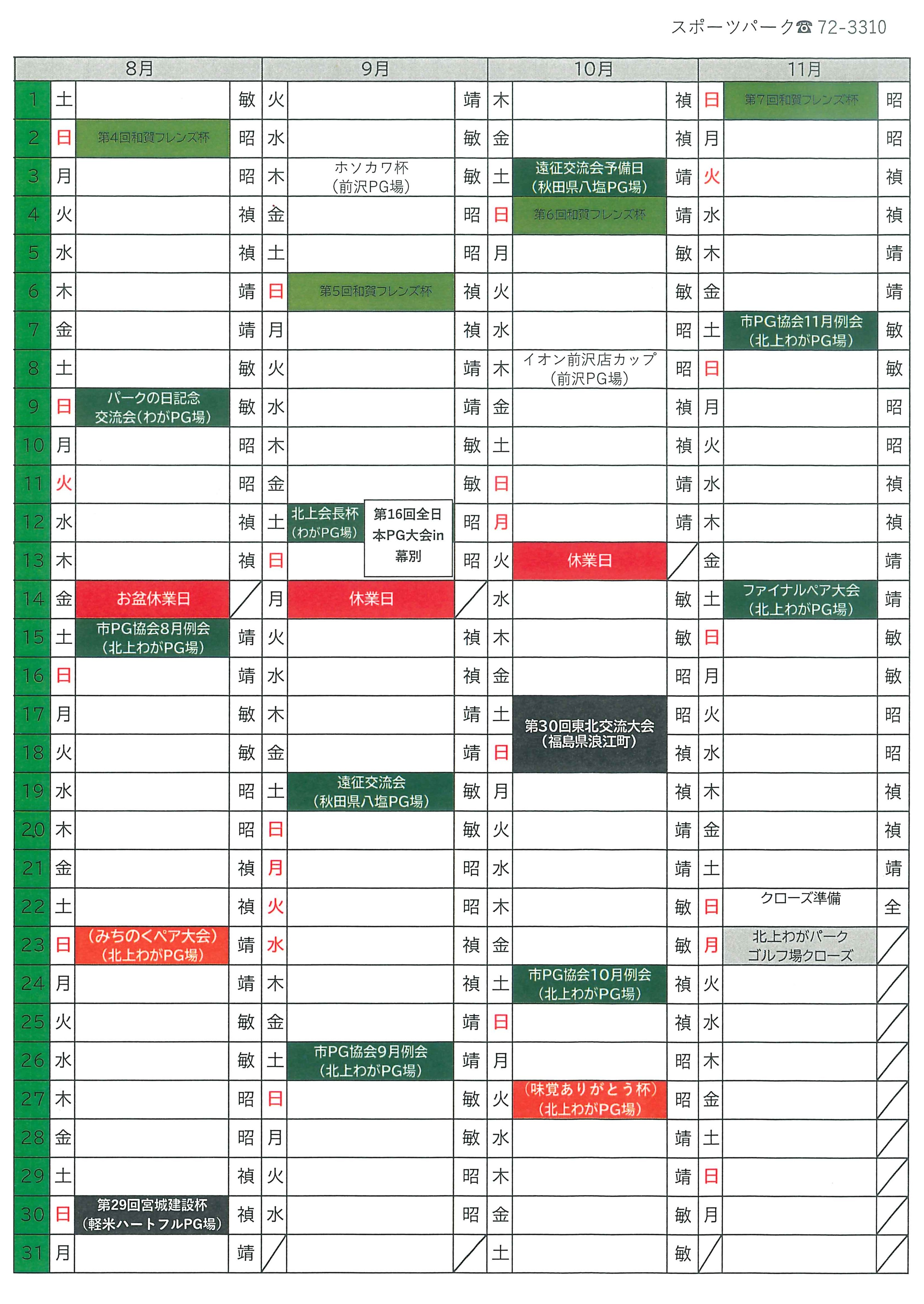 令和8年度の定休日は、5/11、6/8、7/13、8/14、9/14、10/13